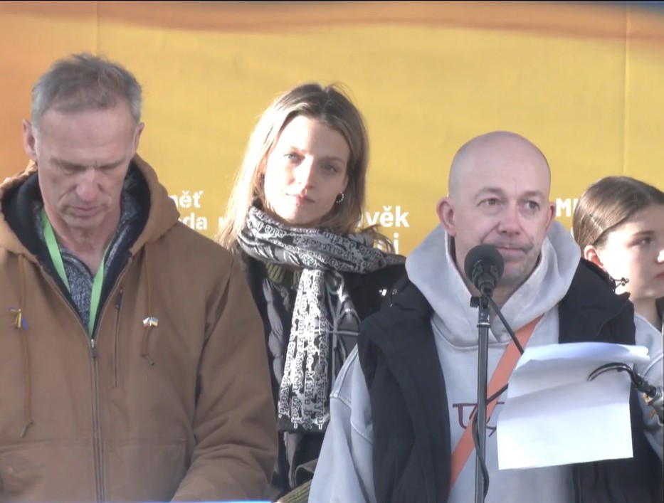 Potom vystoupil Mikuláš Minář, šéf Milionu chvilek. „Prezident Ukrajiny není bezchybný, ale co by se stalo, kdyby neřekl v roce 2022 Američanům, že nepotřebuje odvoz, ale munici. Co by se stalo, kdyby prchl? Ruský voják by stanul na slovenské hranici. Co by následovalo? Putin by přetvořil Ukrajinu ve zbrojnici, z obyvatel by udělal otroky,“ řekl Minář a vyjádřil obavu, že ukrajinské muže by Putin zneužil jako vojáky.