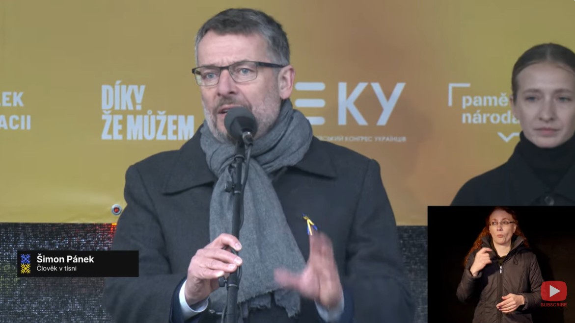 Ukrajina podle něj obstojí. Češi jsou obdivuhodní. „Podporujte nás, velmi si toho vážíme,“ uzavřel svůj proslov.