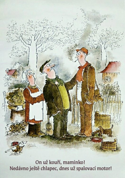 Chlápek to udělá a motor naskočí. Tak auto zhasne, zamkne a jde bláznovi poděkovat.