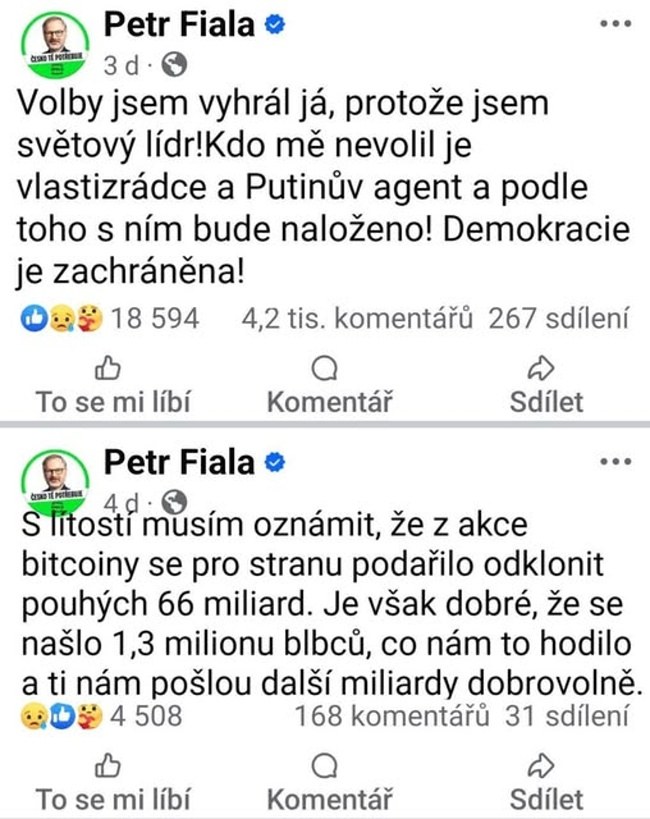 Volby nevolby, vládnout tady musíme my a naši spojenci Fiala a Rakušan. Je přece nad slunce jasné, že nikdo jiný než my nemá takové kádry. Navíc jsme se už osvědčili. Kdekoli zavlála naše černá vlajka, všechno skvěle funguje. Však se podívejte, jak v Praze frčí doprava. Volby jsou přežitek. Vládnout musí ten, kdo stojí na správné straně, a ne ten, kdo vyhrál jakési volby. Evropskou unii si rozvracet nedáme. Rozhodovat musí osvědčené kádry a na správných místech správně proškolení lidé. Třeba jako Vy.