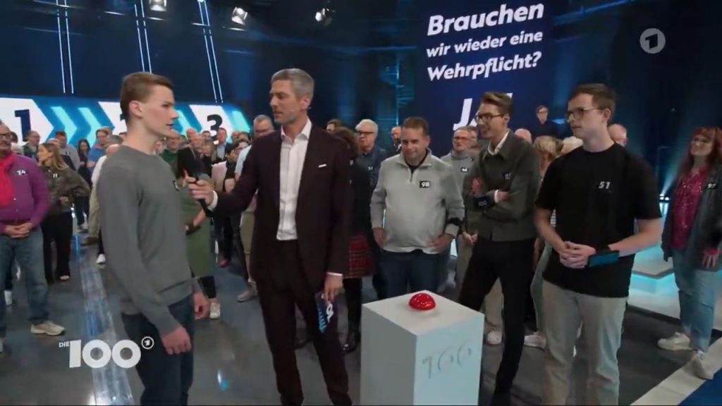 Už na počátku pořadu se ukázalo, jak vyhrocené toto téma je. Ze sta účastníků se 74 lidí postavilo na stranu pro zavedení branné povinnosti, zatímco 22 bylo proti a několik zůstalo nerozhodnutých [4]. Moderátoři zdůraznili, že v době rostoucí nejistoty v Evropě, z války na Ukrajině a z obav z tzv. ruské agrese se otázka obrany státu stává klíčovou. Diskuse se brzy stočila k osobnímu postoji mladé generace k obraně vlasti. A právě zde se rozhořela jedna z nejbouřlivějších debat, jaké ARD v tomto formátu dosud zaznamenala.