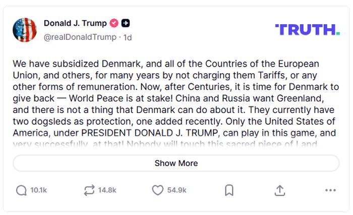 A to prý Trump už nebude akceptovat. Když tedy Dánsko je slabé a nedokáže Grónsko před hrozbami ochránit, musí Kodaň ostrov odevzdat USA. Tedy buď prodat USA, nebo prostě Trump si ten ostrov vezme a vojensky obsadí ve jménu americké národní bezpečnosti, což mu Kongres rád odsouhlasí.