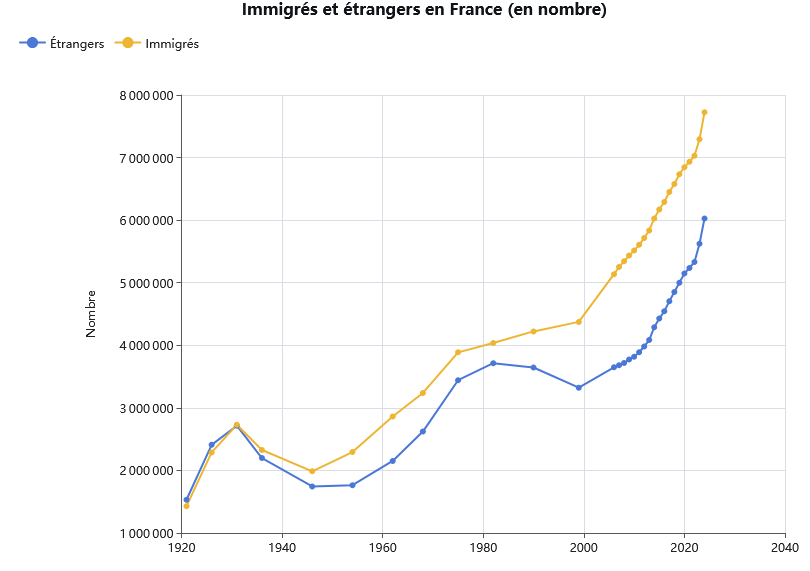 I přes to, že každý racionálně uvažující člověk vidí, že Francie se řítí do islamizace a občanské války, tak od reality odtržené elity si nedají pokoj a umožňují další a další imigraci. V letech 2023 a 2024 probíhá extrémní pokovidová imigrace, která zasáhla většinu vyspělého světa. Jen v roce 2024 přišlo do Francie 351 920 imigrantů. Jen mezi léty 2020 a 2024 přišlo 1 770 026 imigrantů. Francie má roku 2025 celkem 68 605 616 obyvatel, tedy 2,58% jejích obyvatel do ni přišlo od roku do roku 2025.