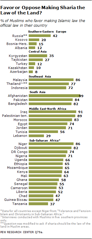 - Ve většině zdrojových zemí většina populace schvaluje právo šaría jako legitimní zákon země.