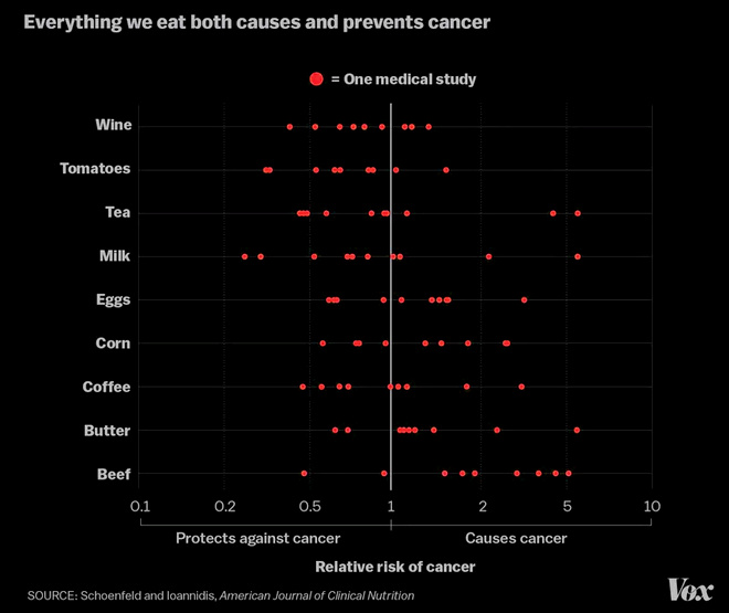 Jednim současnym fenoménem, kterej jasně ukazuje, že vědecký studie nejsou zárukou vůbec ničeho, je ten, že studie dokazujou prakticky cokoliv zhruba stejně často, jako dokazujou opak. Například pro téměř jakoukoliv potravinu najdete studie, který tvrdí, že způsobuje rakovinu, stejně jako studie o tom, že proti ní chrání. Nakolik se potom vůbec dá věřit vědeckejm studiím?