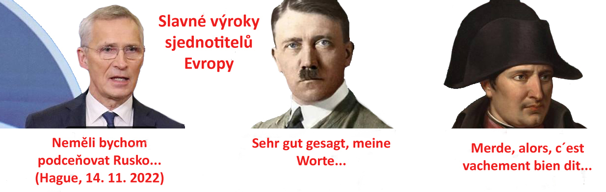 Takže se ptejme: Za co padlo přes milión Ukrajinců v proxy-válce NATO versus Rusko? Nulandová slibovala zelenému puči na Majdanu, že půjdou do NATO a do EU (USA investovaly do „demokratizace“ Ukrajiny 5 miliard dolarů). Je to stejné jako když vypráskaní klausovci slibovali všem mercedes pro privatizaci. Ale nemýlili se, milí hoši. Někteří ho mají, stejně jako někteří mafiáni na Ukrajině profitovali na jednom miliónu mrtvých a zhruba deseti miliónech emigrantů, tj. ze 45 mil. obyvatel na současných cca 35 miliónů. Ukrajina je vylidněná víc, než za stalinského hladomoru ve 30. letech. A válku s Ruskem už prohráli, ale Západ jim to zapomněl říct. A do NATO je nevezmou a do EU taky ne. Takže Západ prodal Ukrajinu stejně jako Československo v Mnichově, nic nového pod sluncem. Na řadě je východní Evropa, která má pochodovat na Stalingrad, také nic nového pod sluncem.